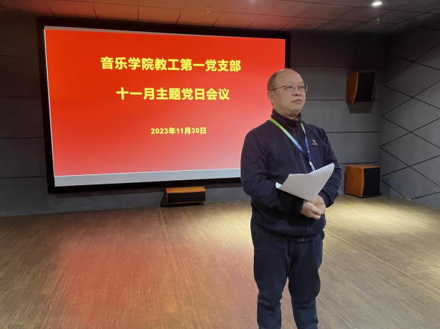 11月30日下午,音乐学院教工第一党支部在湘江楼B702组织召开了“一月一课一片一实践”主题党日活动。
