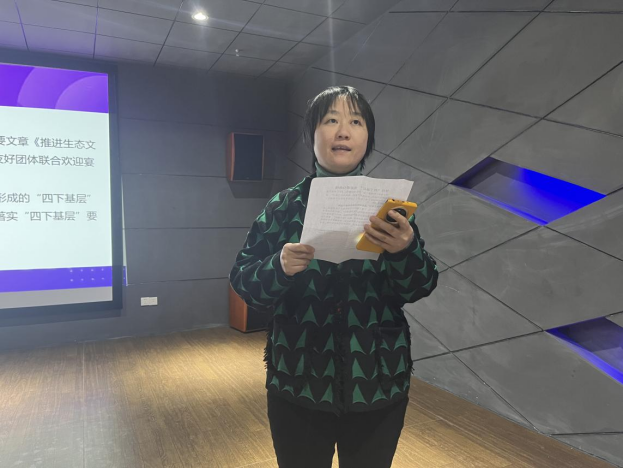 接着,院党委副书记雷蕾领学了习近平总书记在福建工作期间大力倡导并身体力行形成的“四下基层”工作方法和工作制度,牢固树立和践行正确政绩观,自觉落实“四下基层”要求,走好新时代党的群众路线。她指出,深刻理解“四下基层”工作方法是密切联系群众,推动工作落实的制胜法宝,要注重团结协作,为人民群众提供更加优质的教育服务,努力办好人民满意的教育事业。