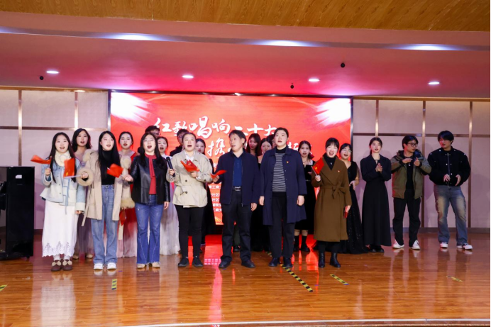 12月9日晚,望月湖第一小学报告厅里乐曲悠扬、人心荡漾,一场以“红歌唱响二十大,携手共进开新篇”为主题的红色专场音乐会正在激情上演。本次活动是由湖南工商大学音乐学院教工第一党支部联合荣龙社区党总支共同举办的区域化党建共建活动,也是湖南工商大学线上一流课程《中国近现代音乐鉴赏》服务社会、走进社区的系列实践活动之一。音乐会以一曲颇具古典风格的古筝合奏《瑶族舞曲》拉开序幕,点燃了观众的热情。随后演奏了十余首脍炙人口的曲目,欢快热情的《萨丽哈之歌》勾勒出新疆人民载歌载舞的场景,歌曲《祖国不会忘记》《歌唱祖国》波澜壮阔的气势喷薄而出……现场演绎的一首首经典曲目,让观众感受到音乐的独特魅力,为居民朋友们带来了音乐和文化的视听盛宴。