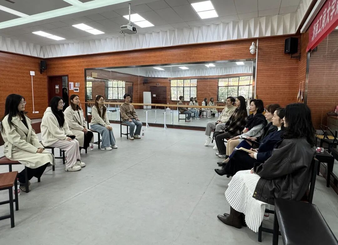 2025年11月14日,湖南工商大学音乐学院召开音乐舞蹈与人工智能卓越班师生座谈会。学院执行院长符姗姗教授、副院长汤慧池教授、舞蹈表演系主任宋薇副教授及全体教师和学生代表共同参与,围绕学生成长、课程优化与教学资源整合等议题展开深入交流,旨在推动学科交叉融合,促进学生全面发展。