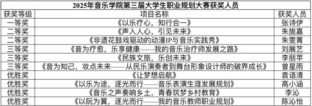 本次大赛既是音院学子展示风采、绽放才华的闪亮舞台,更是锤炼生涯规划能力、赋能成长发展的实景课堂。未来,学院将持续深化就业创业教育改革,整合校内外优质资源,以更精准的指导、更务实的举措,助力学子以清晰规划锚定人生航向,以过硬本领奔赴职业征程。